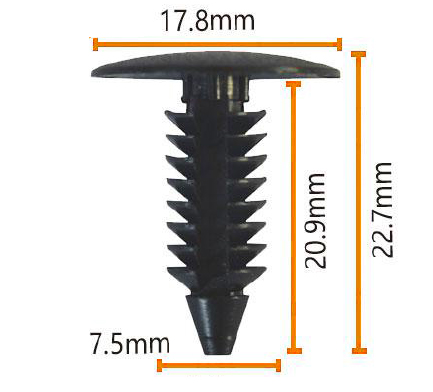 Univerzální černý plastový šroub Qeepei Universal Fit, navržený tak, aby poskytoval robustní a všestranné řešení pro širokou škálu automobilových aplikací. S přesným průměrem 7,5 mm je tento odolný šroub zkonstruován tak, aby nabídl bezpečné přizpůsobení do různých modelů vozidel, což zajišťuje kompatibilitu napříč deskou. Ať už pracujete na sedanu, SUV nebo kamionu, rozšiřující šroub QEEPEI je ideální volbou pro spolehlivé a trvalé instalace.