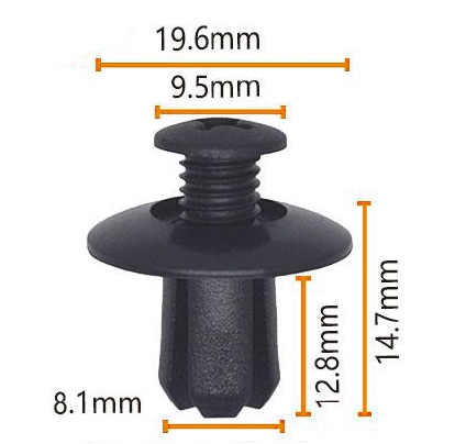 Tento univerzální klip automobilu je dobrý prodejce, velikost je přesná na 0,1 mm, takže části vašeho vozidla se vejdou pevně, šířka 19,6 mm, výšku 9,5 mm.